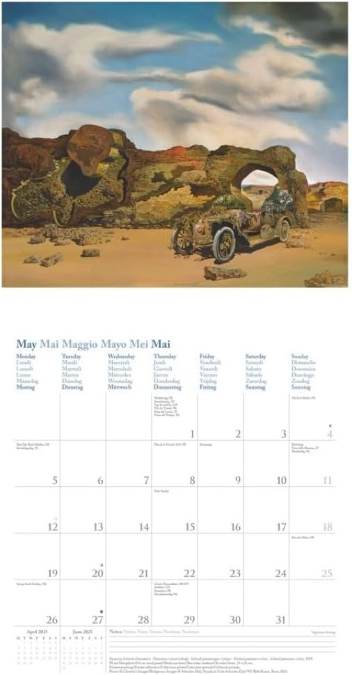 Der „Dalí 2025“-Kalender ist ein Muss für Kunstliebhaber und Fans des Surrealismus. Er bietet nicht nur eine ästhetische Bereicherung für jede Wand, sondern regt auch dazu an, Dalís Werke immer wieder neu zu entdecken und zu interpretieren. Ein ideales Geschenk für alle, die sich von der Welt der Kunst inspirieren lassen möchten.