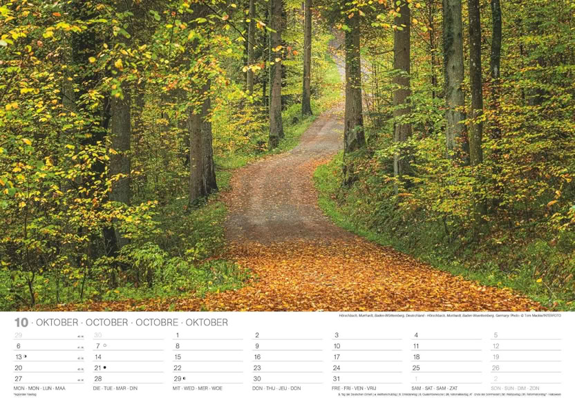 Jedes Kalenderblatt zeigt idyllische Pfade, die durch traumhafte Landschaften führen: von verwunschenen Waldwegen und blühenden Feldern bis hin zu Küstenpfaden, die sich entlang des Meeres schlängeln. Die sorgfältig ausgewählten Fotografien sind von einer beeindruckenden Schönheit und fangen die Atmosphäre jedes Ortes meisterhaft ein. Sie wecken die Sehnsucht nach Ruhe, Naturverbundenheit und Entdeckungsfreude.